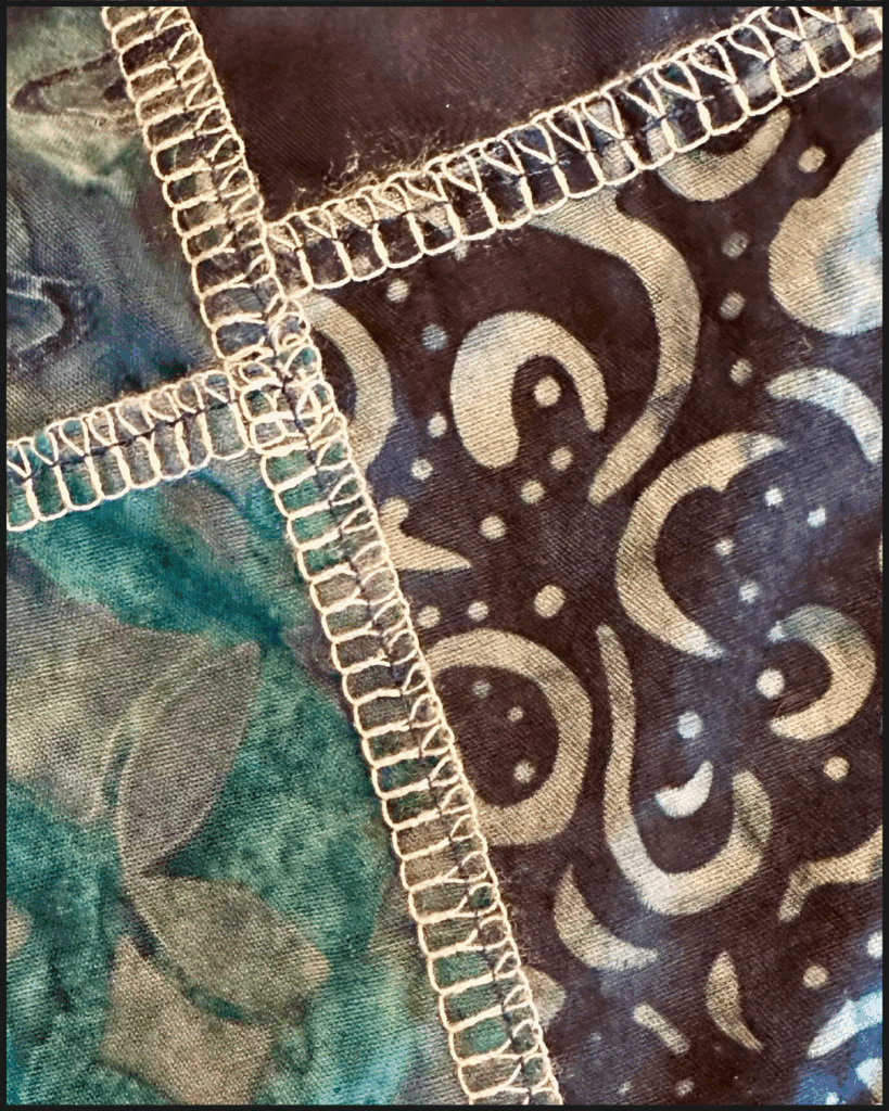 I work with carefully curated calicos and richly hand-dyed batiks (dyed by artisans, hand-selected by me), mixing colors and textures like a painter with fabric. Each piece of fabric is chosen with intention—nothing random, nothing accidental. It’s patchwork, yes—but make it bold, beautiful, and unapologetically deliberate.